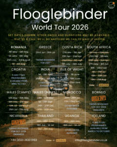 Our Flooglebinder World Tour 2026 showcases where we’ll be next year, from the volcanic landscapes of Iceland to the coral reefs of Costa Rica, the savannahs of South Africa, and the rainforests of Borneo. We’ve reimagined our trip calendar as a concert-style poster, packed with adventure, sustainability, and impact and yes, a few sold-out dates too!