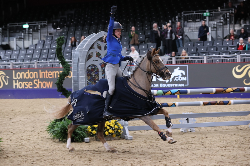Riding Red Alert III for the last time at a major competition, Ella was one of eight riders who made it into the jump-off in the Littleton Manor Equestrian 128cm Championship at the London International Horse Show. Ella navigated slick, tight lines with confidence and flair in the jump-off to win by 1.39 seconds.