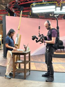 The producers were so impressed by her entry, that Ruby was invited to be one of a select number of artists on the programme. After travelling down to London, Ruby painted her sitter – to be revealed in episode 5 – live at Battersea Arts Centre in front of a studio full of cameras.