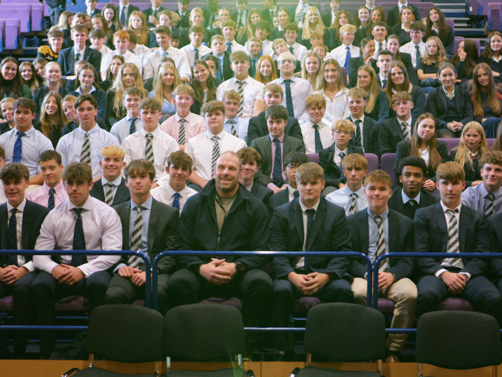 Jones also spoke about balancing professional sport with personal life — particularly in the later stages of his career. “Some of the best distractions away from my sport have been the best things to help it. Having an outlet is so important.” His reflections on routines, mental toughness, and the power of small, consistent improvements — “marginal gains” — resonated deeply with students aiming for excellence in all areas of school life.
