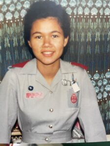As an 18-year-old, Joanna followed in her father’s footsteps, joining the British Army and qualifying as a staff nurse before being commissioned as a Nursing Officer in 1989.