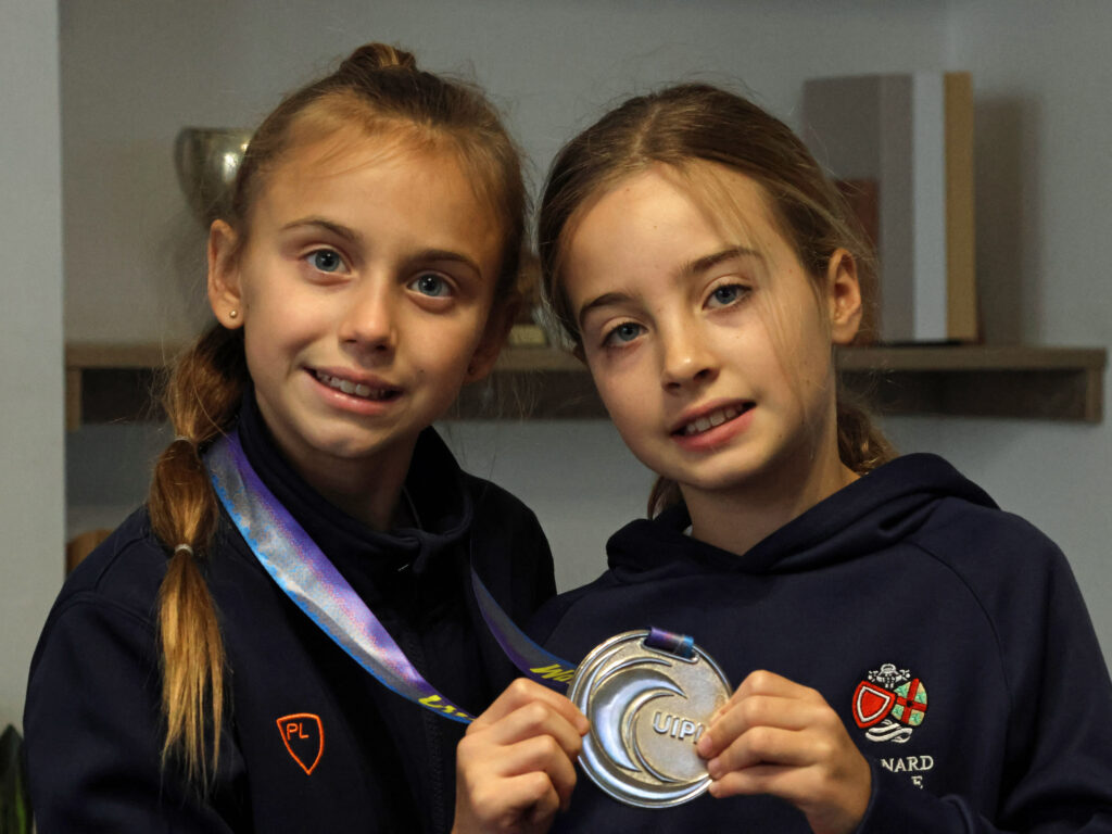 Image: Barnard Castle Preparatory School pupils Darcy, left, and Freya Scott who travelled with Team GB to compete in U11 Triathle and Laser Run events