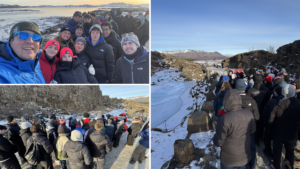 The group explored Iceland’s unique approach to renewable energy with visits to the Hellisheiði geothermal power station, the geothermal fields at Hveragerði and Urriðafoss on the River Þjórsá, before discovering the island’s tectonic past at the interactive LAVA Centre.