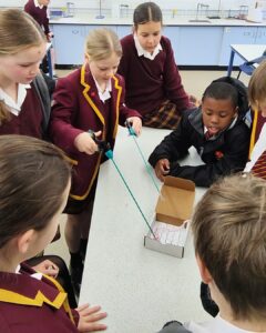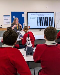Year 7 pupils also explored the intersection of science and philosophy during a cross-curricular workshop led by a specialist from the Faraday Institute for Religion and Science, University of Cambridge. Linking closely to their studies, pupils engaged with big questions about our place in the universe, alongside hands-on experiences including fossil handling and live demonstrations.